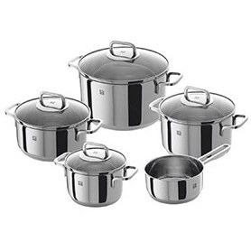 سرویس قابلمه استیل زولینگ مدل Quadro 5 تکه، محصولی از برند آلمانی Zwilling است که برای پختوپز روزمره و حرفهای طراحی شده. این سرویس شامل 3 قابلمه با قطرهای 16، 20 و 24 سانتیمتر، یک شیرجوش و تابه است و از استیل ضدزنگ 18/10 ساخته شده که مقاومت بالایی در برابر زنگزدگی و تغییر رنگ دارد12. پایه SIGMA Classic چندلایه آن، حرارت را به طور یکنواخت توزیع میکند و مناسب اجاقهای القایی، گازی، برقی و فر تا 200 درجه سانتیگراد است3. این محصول با درپوشهای شیشهای، امکان مشاهده غذا را فراهم میکند و در ماشین ظرفشویی قابل شستوشو است4. در بازار ایران، عمدتاً از طریق فروشگاههای آنلاین عرضه میشود و رتبه کلی آن در پلتفرمهای بینالمللی حدود 4.7 از 5 است5.